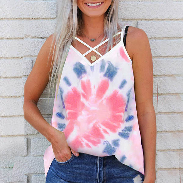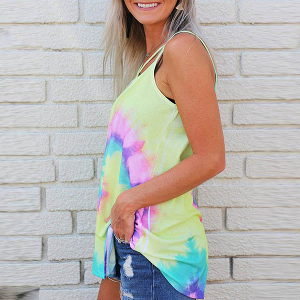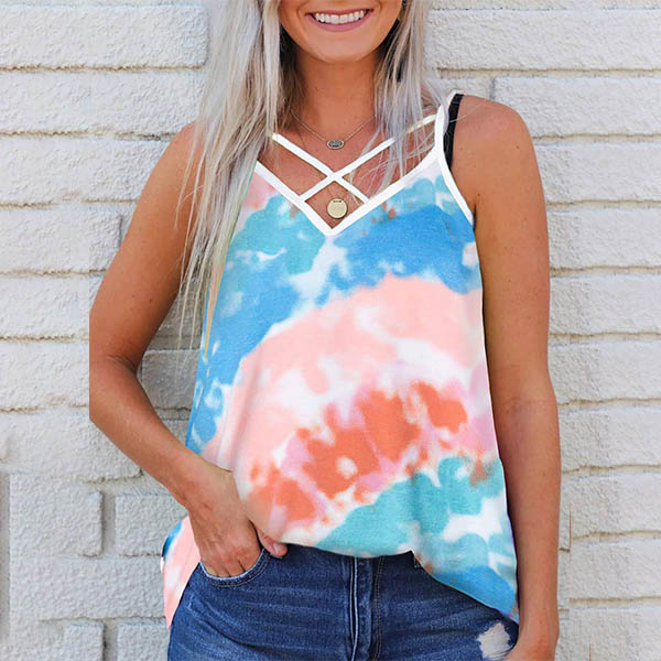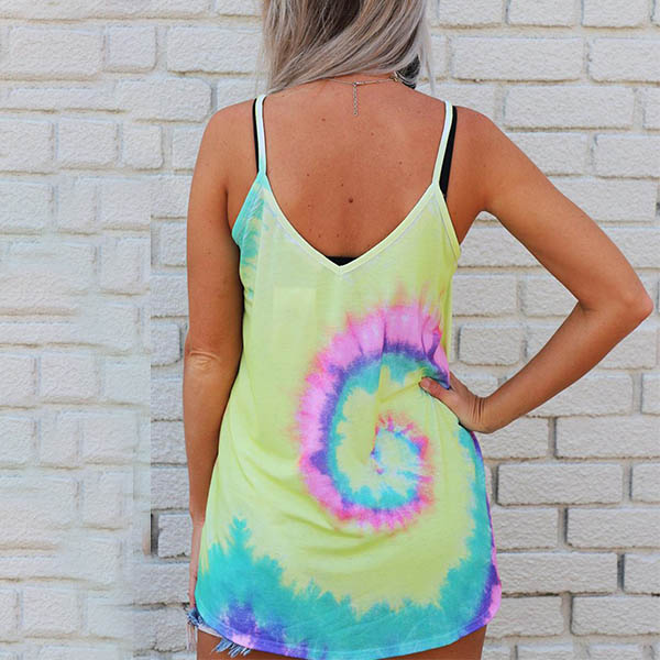 Sexy Backless V-neck Tie-dye Printed Sling Top