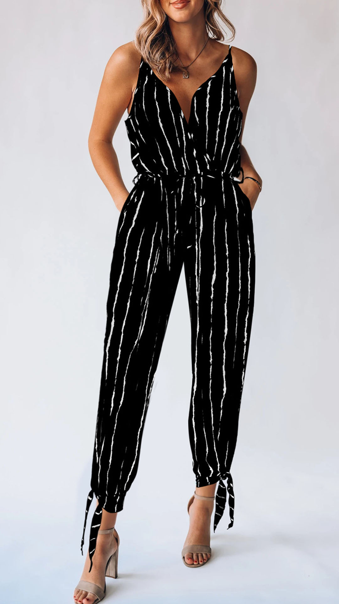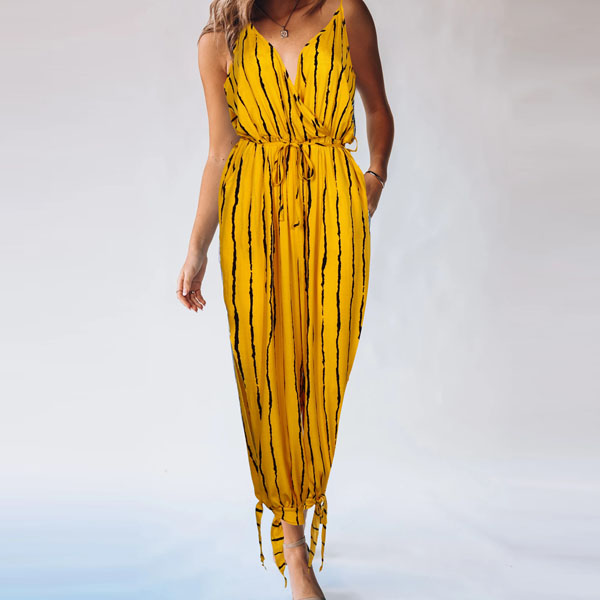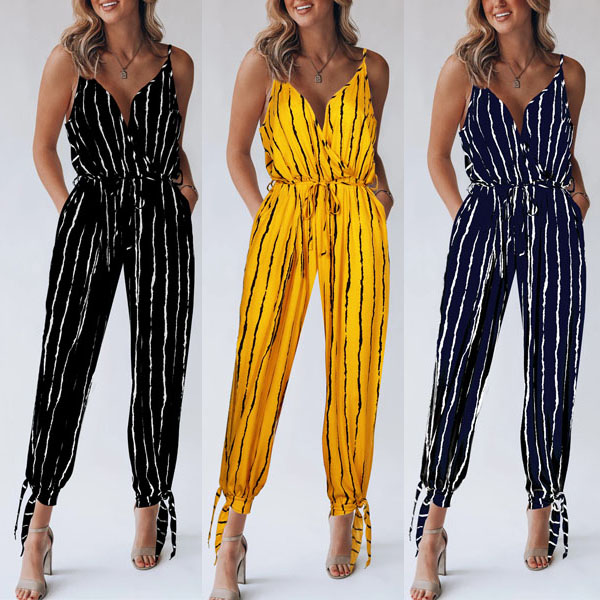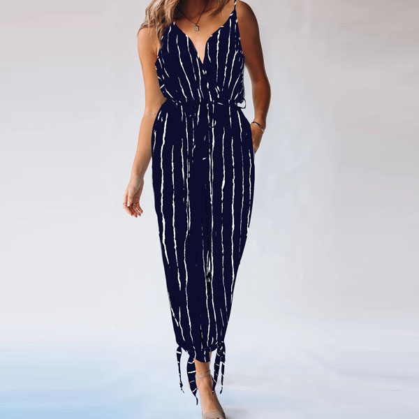 Wanna try a different style piece? Then you can have a try this stripe jumpsuit. Sling style,with backless,v-neck and high waist design,this piece not only can showcase your slender figure,but also can exude your sexy,flirty and sultry side. For the sun-soaked summer days,this piece is worth to arouse your attention.