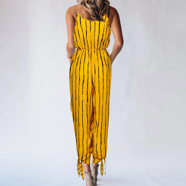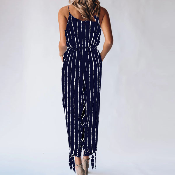 Sexy Backless V-nekc High Waist Striped Printed Sling Jumpsuit