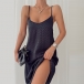 Embrace your sun-soaked summer day with this delightful and relaxed dress. Sling style,with backless and low-cut design,which can offer you a more alluring look. The wavy-stripe printed details make it look not so dull,while its soft fabric and loose silhouette design will ensure you a cool and comfortable day.