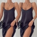Sexy Backless Wavy-stripe Printed Sling Loose Dress
