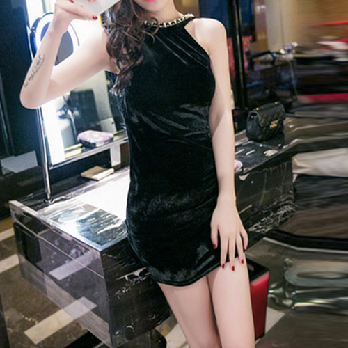 Sexy Beaded Backless Sleeveless Round Neck Bodycon Dress