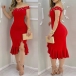 Sexy Beaded Boat Neck Irregular Ruffle Hem Slim Fit Party Dress