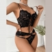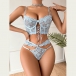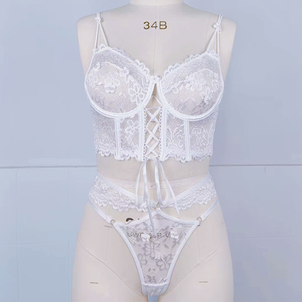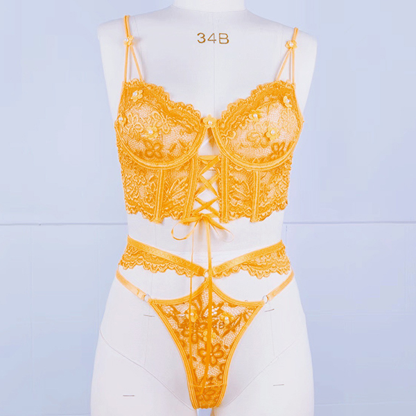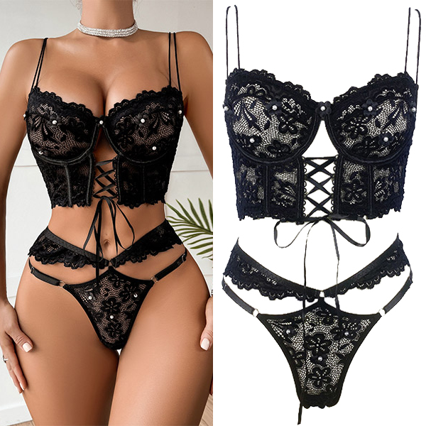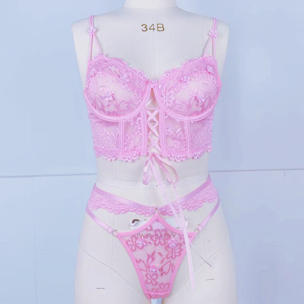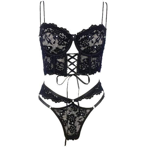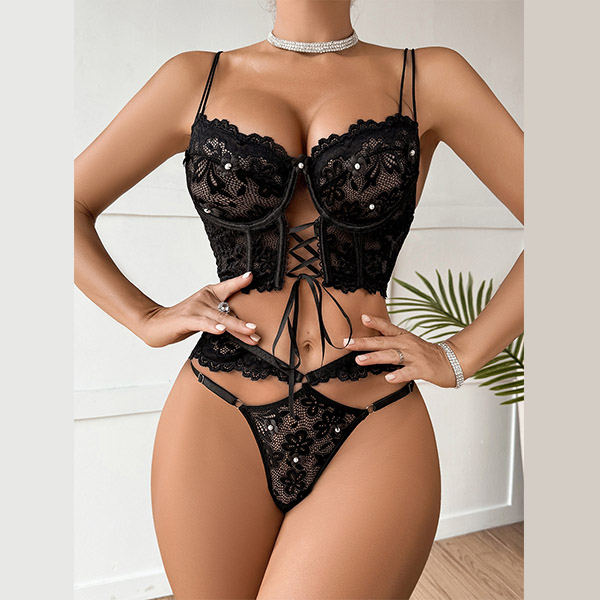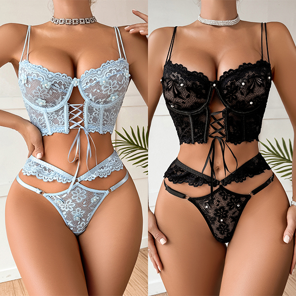 Sexy Beaded Lace-up Cutout Lace Two-piece Lingerie Set