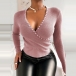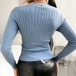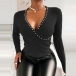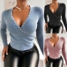 Sexy Beaded V-neck Long Sleeve Solid Color Slim Fit Knit Top