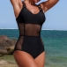 Sexy Black/Leopard Print Mesh Panel Swimsuit Monokini -Ring Straps & Criss-Cross Back Detail