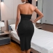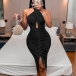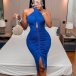 Sexy Bling-bling Backless Gathered Cutout Halterneck Party Dress