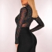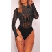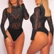 Sexy Bling-bling Colorful Rhinestone Mesh Mock Neck Long Sleeve Bodysuit