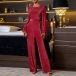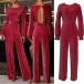 This jumpsuit features a crew neck and puff long sleeves adorned with bling-bling embellishments that add a touch of sparkle and shine, creating a luxurious and eye-catching look. The high-rise design accentuates your waist and elongates your legs. And the backless detail adds a hint of allure and drama. The straight-cut leg design adds a modern and sophisticated touch, making this jumpsuit perfect for a variety of occasions, from cocktail parties to formal events. Wanna have one?