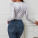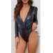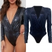 Sexy Bling-bling Deep V-neck Long Sleeve Bodysuit