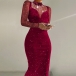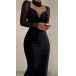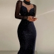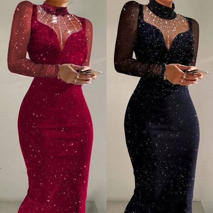 Sexy Bling-bling Gauze Spliced Mock Neck Long Sleeve Bodycon Party Dress