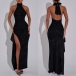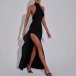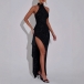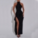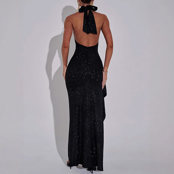 Sexy Bling-bling Halter Neck Side Slit Maxi Party Dress
