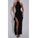 This bling-bling party dress features a halter neck design, side slit detail, and sparkling embellishments for a stunning and eye-catching look. It is perfect for special occasions, parties, or any event where you want to make a statement and turn heads.