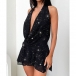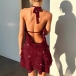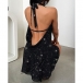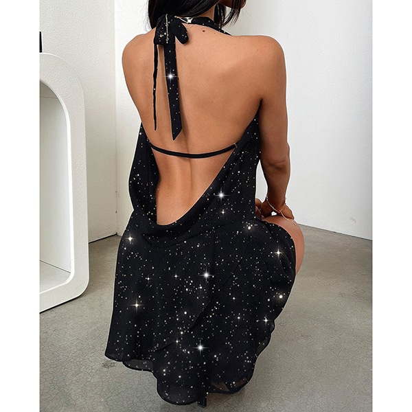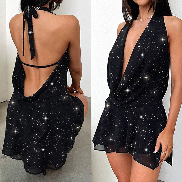 Sexy Bling-bling Halterneck Draped Plunge V-neck Backless Mini Dress