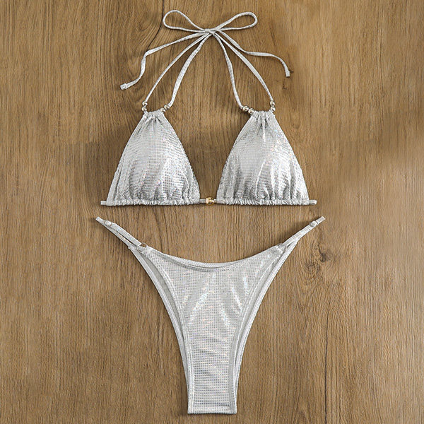 Sexy Bling-bling Halterneck Self-tie Two-piece Bikini Set