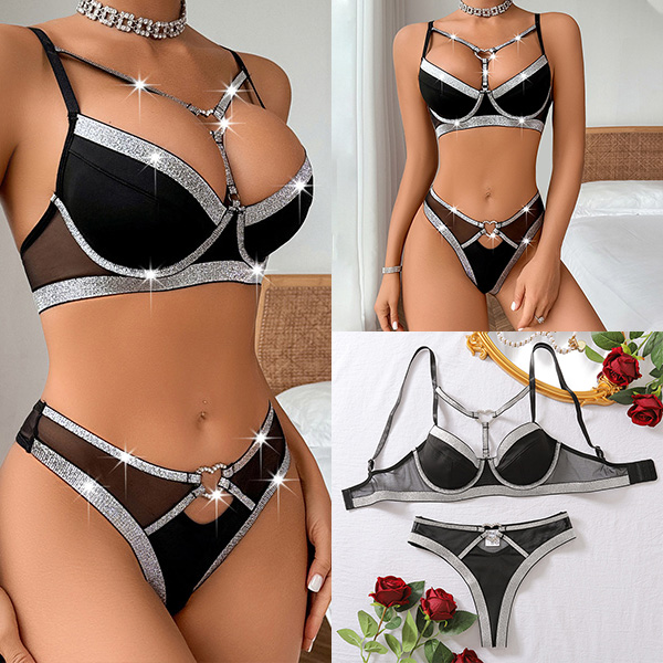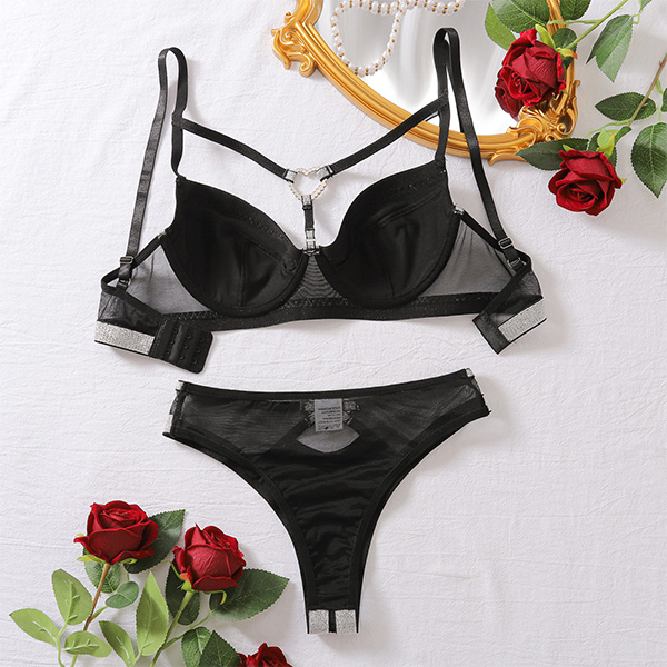 Sexy Bling-bling Heart-ring Cutout Two-piece Lingerie Set