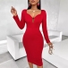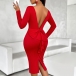This sexy red dress features front cutout, sexy V-neck, back bowknot with ruffle details and back slit design. It is a captivating and eye-catching design. Pair it with strappy heels and statement earrings for a night out or special event!