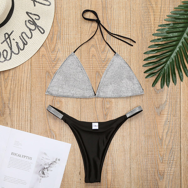 Sexy Bling-bling Rhinestone Two-piece Bikini Set