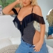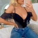 Sexy Bling Bling Ruffled V-neck Lingerie Bodysuit