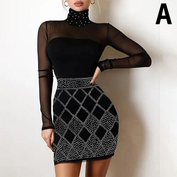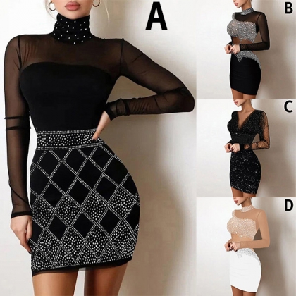 A must have staple piece in any girl's wardrobe, this sexy black dress would be a perfect choice for the parties and gatherings. Finished with stand collar and bling bling rhinestone design, it looks more alluring. Matching with your sexy heels and elegant clutch for a stunning party look!