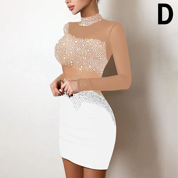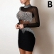 Sexy Bling-Bling Semi-through Rhinestone Stand Collar Party Dress