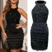 This party dress features a halter neckline adorned with dazzling sequins bodice, a sleeveless design, a sultry backless style, and playful tassel detailing along the skirt for a stunning and eye-catching ensemble. Perfect for party wear~