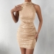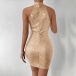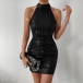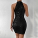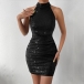 Sexy Bling-bling Sequin Mock Neck Sleeveless Bodycon Dress