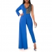 Look at this Asymmetrical Jumpsuit, wanna have one? Long sleeve contrast to sleeveless design, flared legging contrast to the fitted leg, Also, the front one side sequin stand its feature easily. Perfect Party Wear!