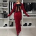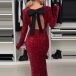 Sexy Bling-bling Sequined Crew Neck Long Sleeve Backless Bowknot Bodycon Maxi Dress