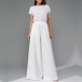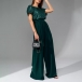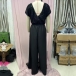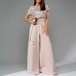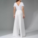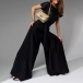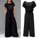 This glamorous jumpsuit features eye-catching bling-bling sequins bodice spliced with chiffon pants that will make you shine and stand out from the crowd. The crew neck and short sleeves add a touch of sophistication, while the self-tie waist detail accentuates your figure and adds a flattering touch. The wide-leg silhouette creates a chic and trendy look that is both stylish and comfortable. Perfect for a night out, a special event, or a party, this sequined jumpsuit will make you feel like a star wherever you go.