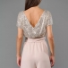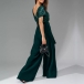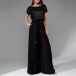 Sexy Bling-bling Sequined Crew Neck Short Sleeve Self-tie Waist Wide-leg Jumpsuit