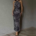Sexy Bling-bling Sequined Halterneck Backless Bodycon Party Dress