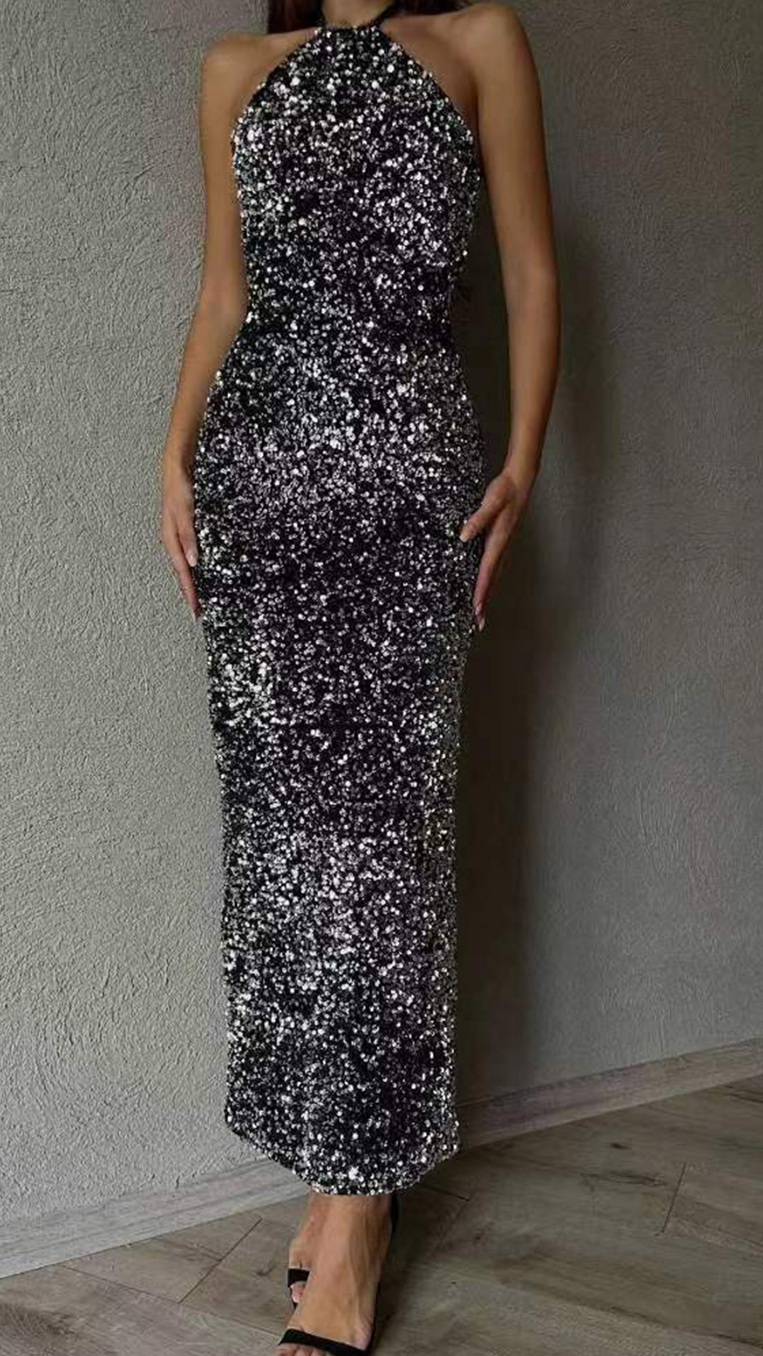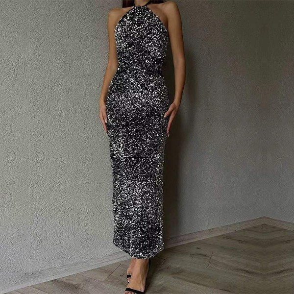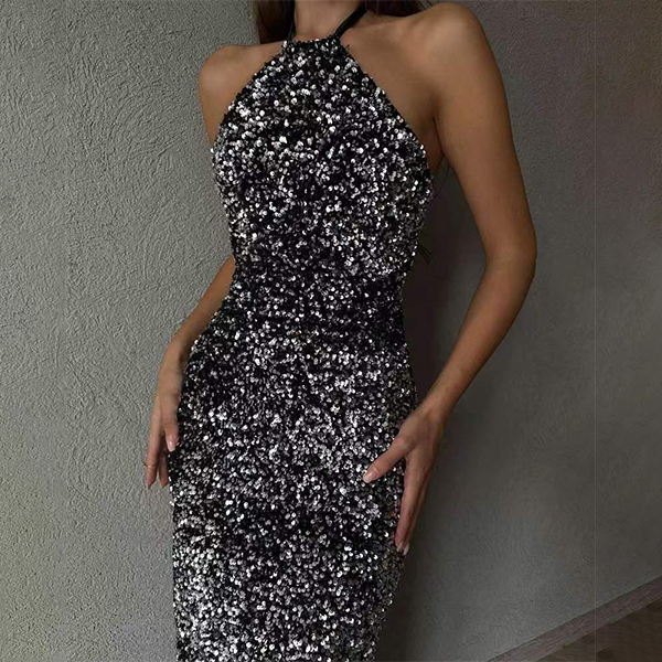 This party dress features a halterneck design adorned with shimmering sequins, a sexy backless silhouette, and a bodycon fit that accentuates your curves for a stunning and head-turning look. It is designed to make you stand out and dazzle in the spotlight.