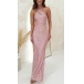 Crafted with high-quality sequin fabric, this dress offers a glamorous and eye-catching look. Featuring a halter neck and sleeveless design, this dress exudes a sexy and sophisticated vibe. The backless detail adds an alluring and sensual touch to the dress. It is perfect for glamorous and special occasions.