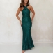 Sexy Bling-bling Sequined Halterneck Sleeveless Backless Maxi Party Dress