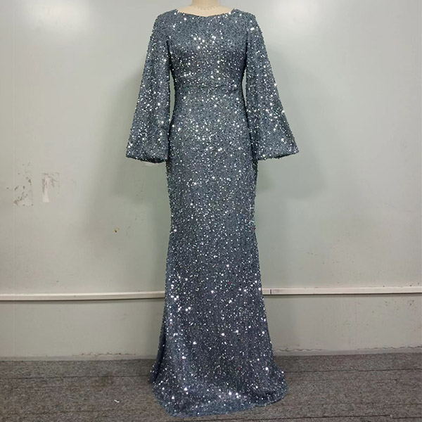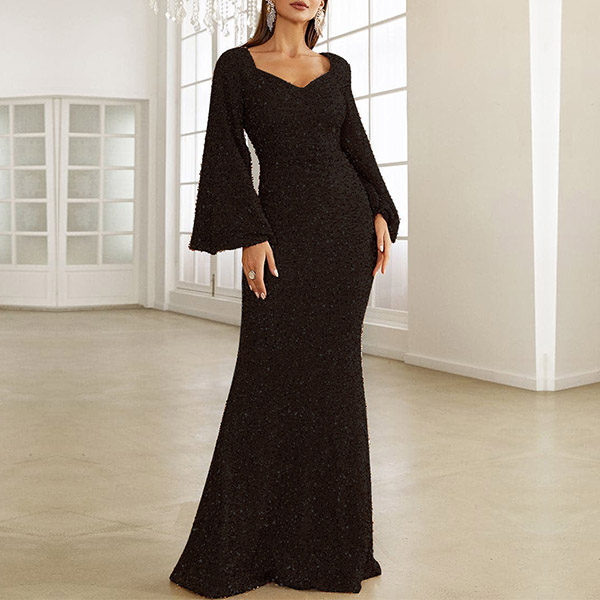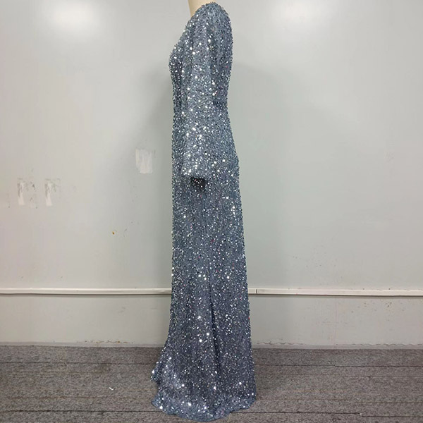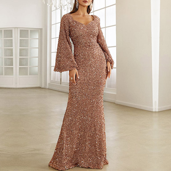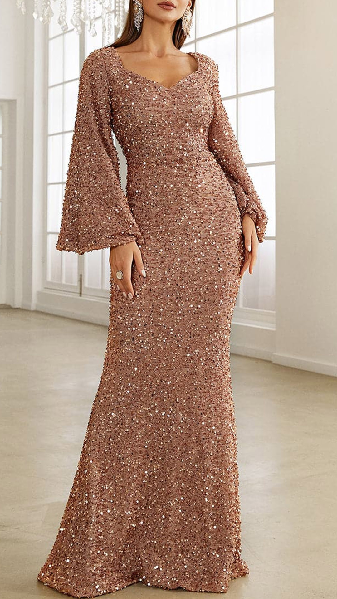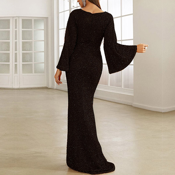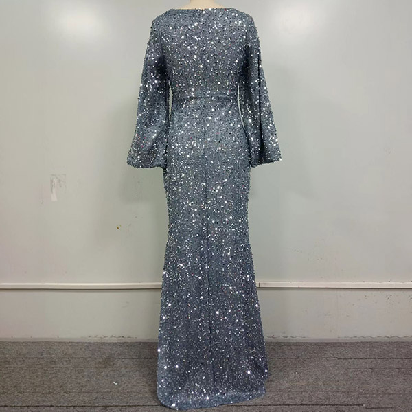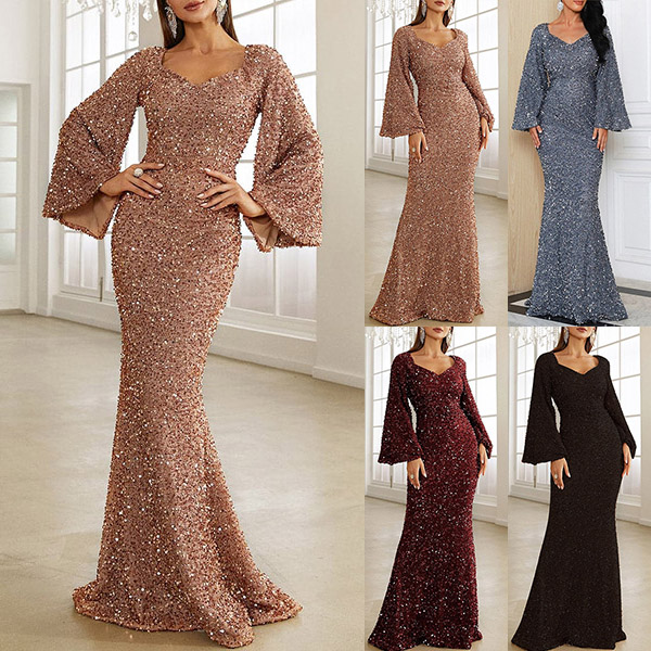 Sexy Bling-bling Sequined Long Sleeve V-neck Fishtail Party Dress