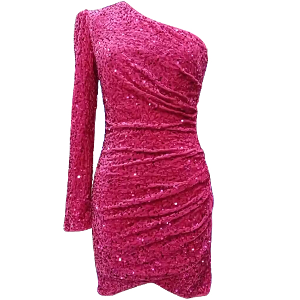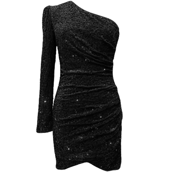 This stunning dress is designed to make you feel like a star with its shimmering sequined fabric and alluring asymmetrical silhouette. The one-shoulder neckline adds a touch of glamour and sophistication, while the irregular hemline create a dramatic and eye-catching effect.Pair this sequined bodycon dress with strappy heels and statement earrings for a show-stopping look.