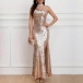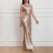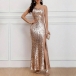 Sexy Bling-bling Sequined One-shoulder Side Slit Party Dress