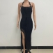 Sexy Bling-bling Sequined Sleeveless Slit Halter Party Dress