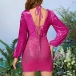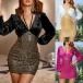 Sexy Bling--bling Sequined Spliced Velvet Halterneck Long Sleeve Bodycon Party Dress
