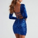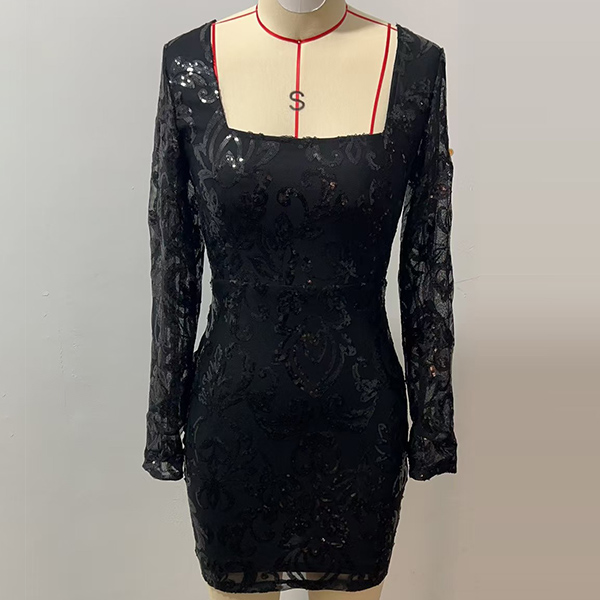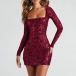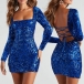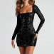 Sexy Bling-bling Sequined Square Neck Lace-up Backless Bodycon Party Dress