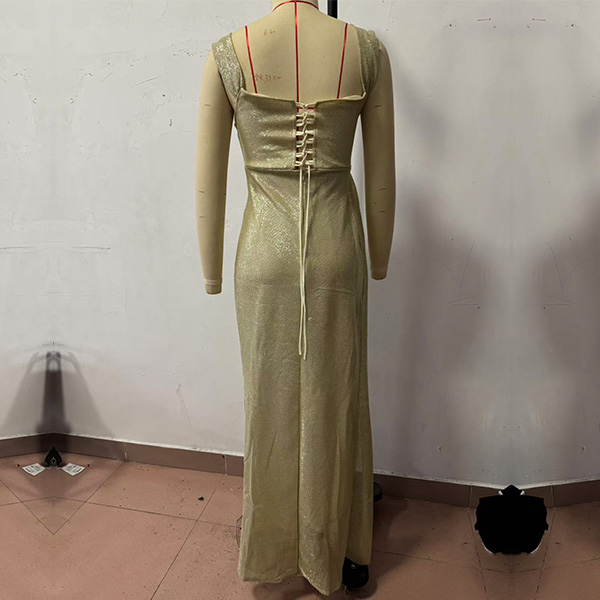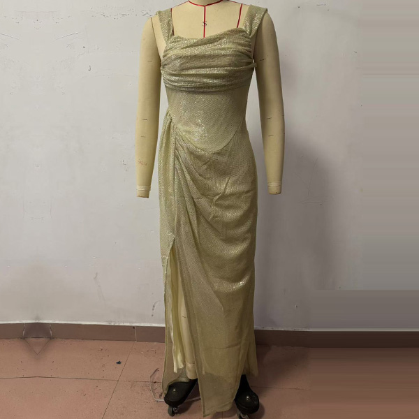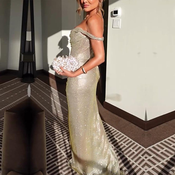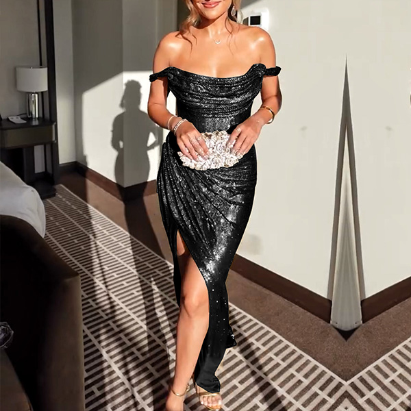 This dress features a stunning sequined design, a strapless design, a sexy side slit, and ruched detailing that will make you shine and stand out from the crowd. Whether you're attending a cocktail party, a formal event, or a night out with friends, this sequined maxi party dress is the perfect choice for a chic and stylish look.