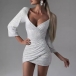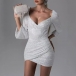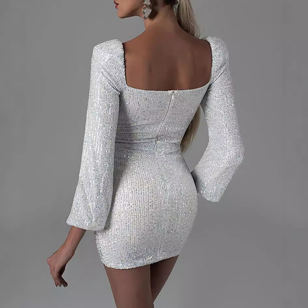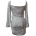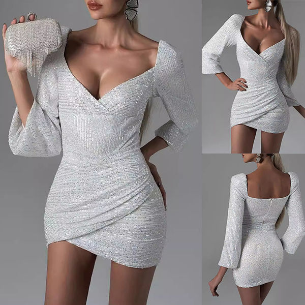 Sexy Bling-bling Sequined V-neck Long Sleeve Irregular Hemline Bodycon Party Dress