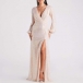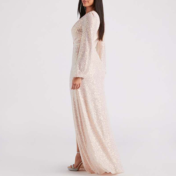 Sexy Bling-bling Sequined V-neck Long Sleeve Side Slit Maxi Party Dress