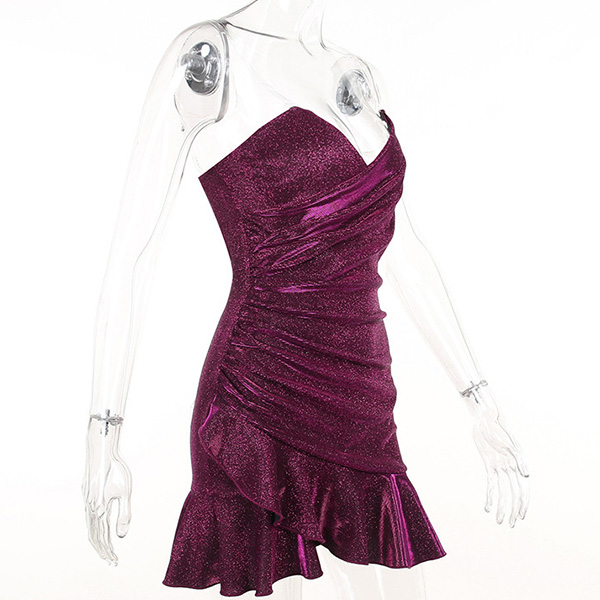 Sexy Bling-bling Strapless Ruffled Party Dress