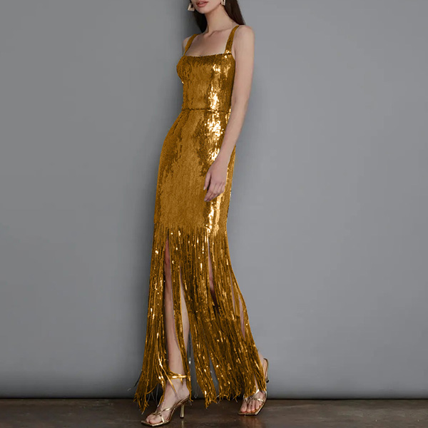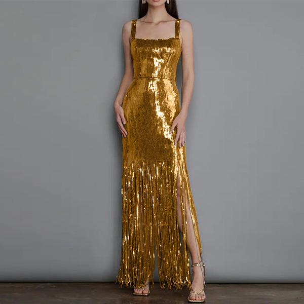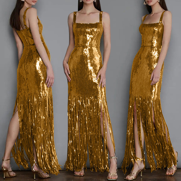 Get ready to turn heads and make a statement with this dazzling dress. The bling-bling tassel detailing adds a touch of glamour and sparkle, making it the perfect choice for any party or special occasion.