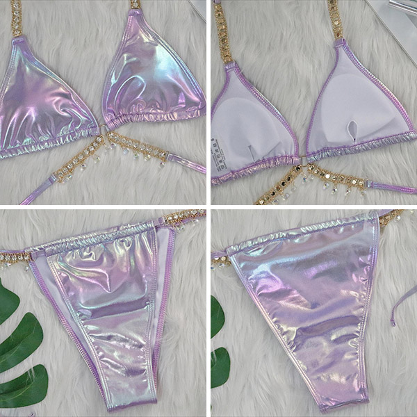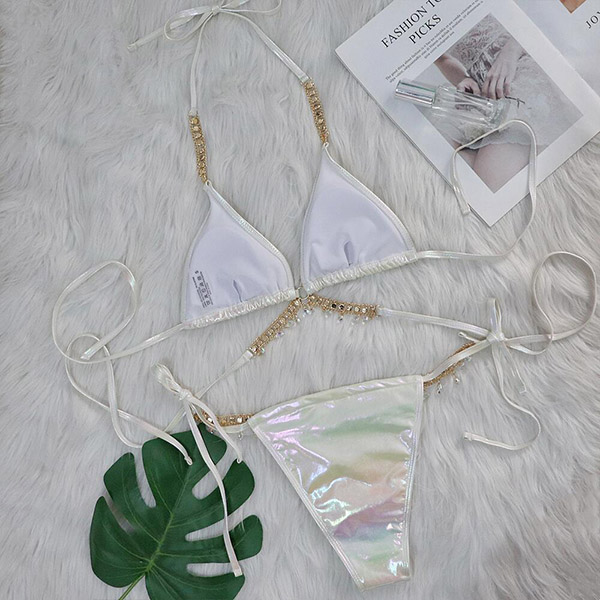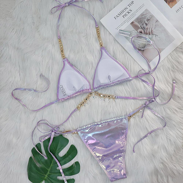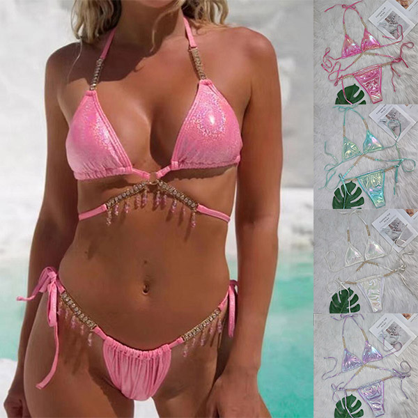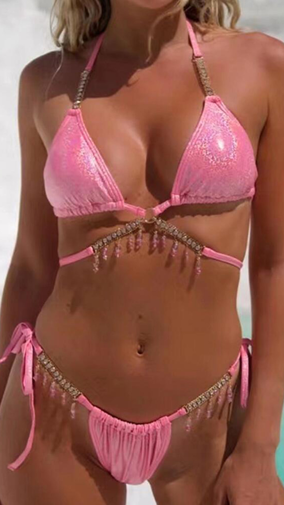 Sexy Bling-bling Tassel Self-tie Two-piece Bikini Set