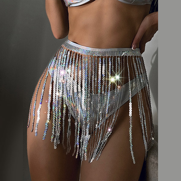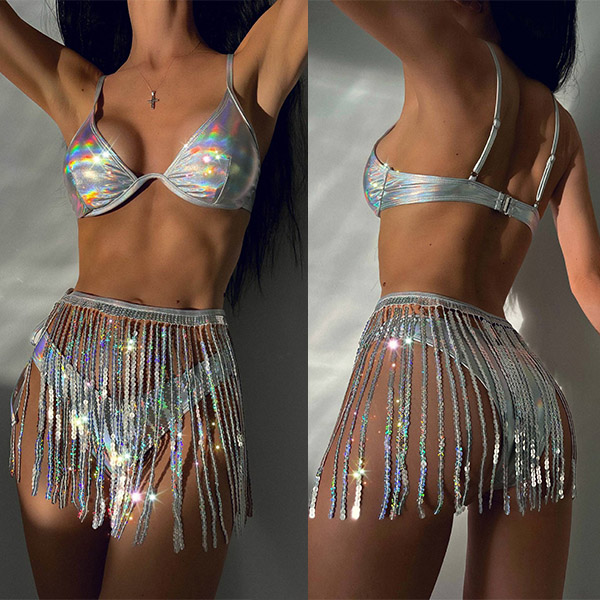 Sexy Bling-bling Tassel Three-piece Bikini Set