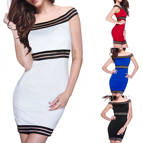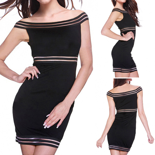 Sexy Boat Neck Gauze Spliced Bodycon Dress