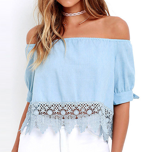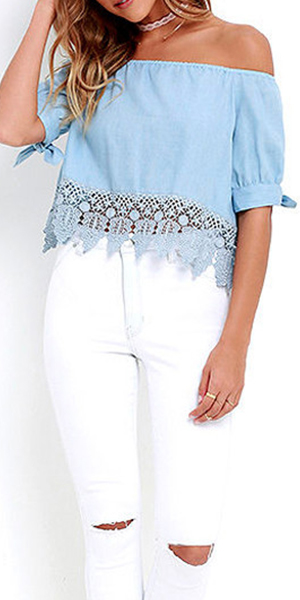 and lace spliced hem design makes this piece so feminine. We suggest you pairing it with your some